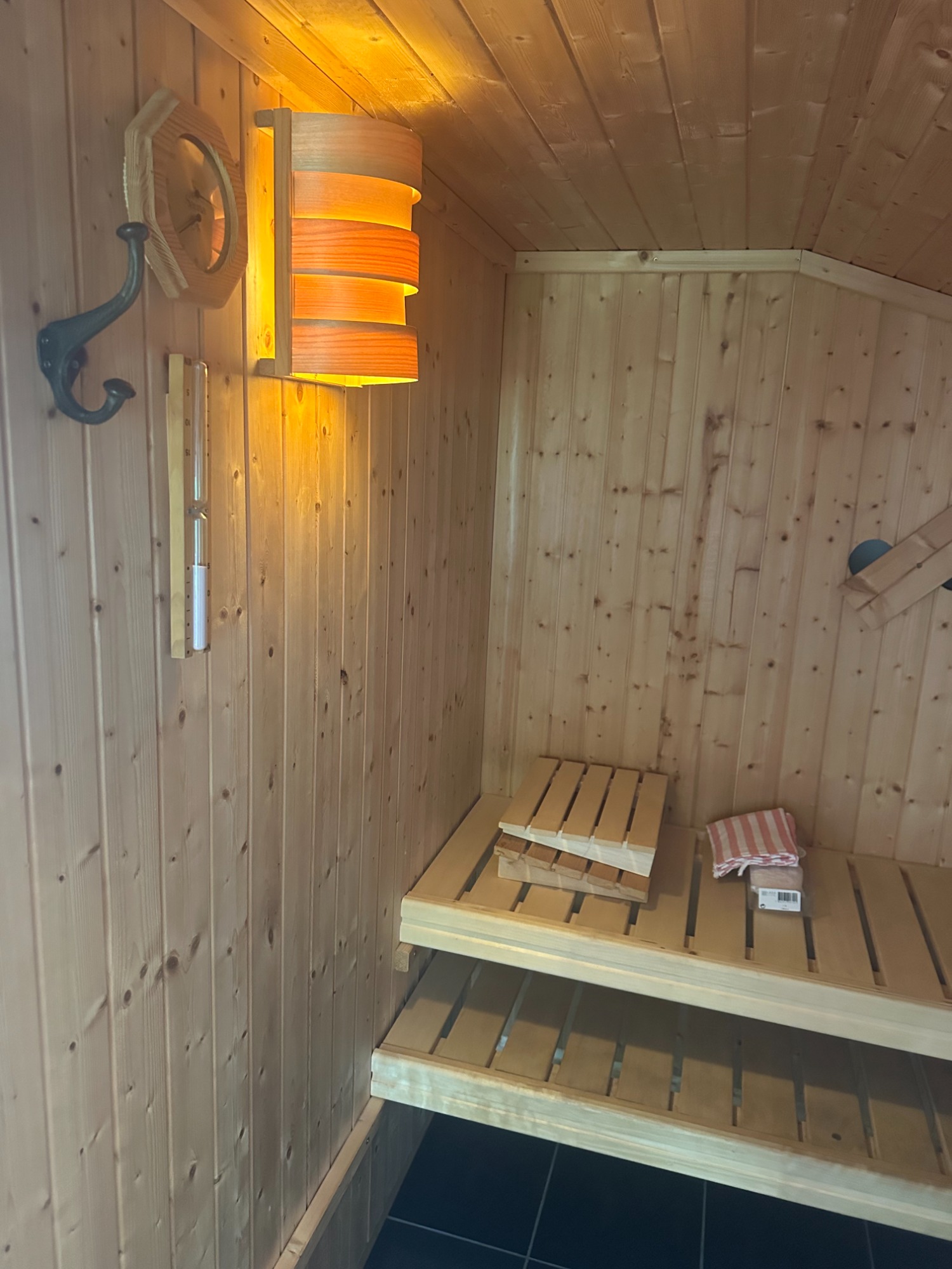 Het huisje is van alle gemakken voorzien: een tweepersoonsbed, een zithoek, keukentje, toilet, douche en zelfs een sauna om te ontspannen na een lange dag.